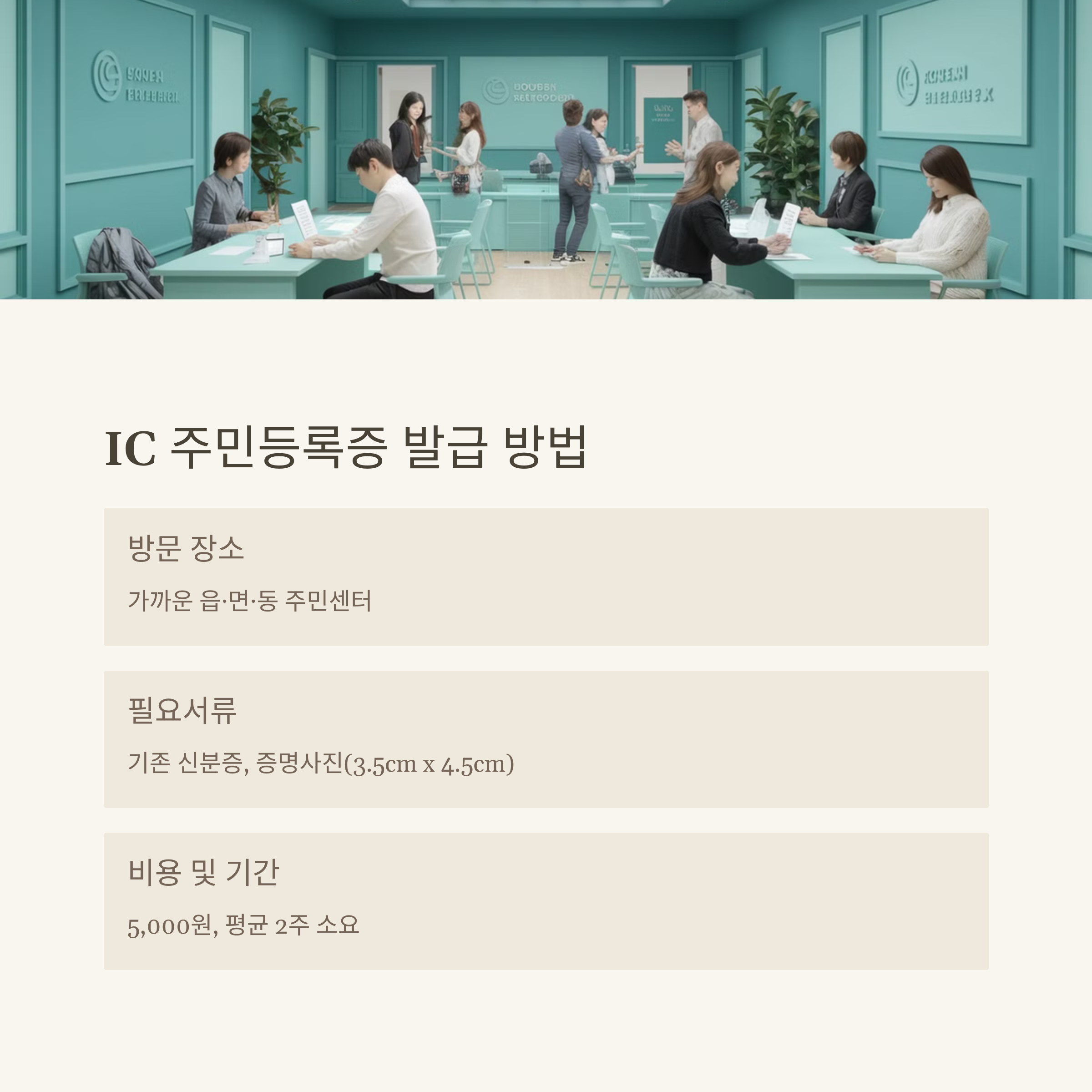 - 필요서류: 기존 신분증, 증명사진(3.5cm x 4.5cm)