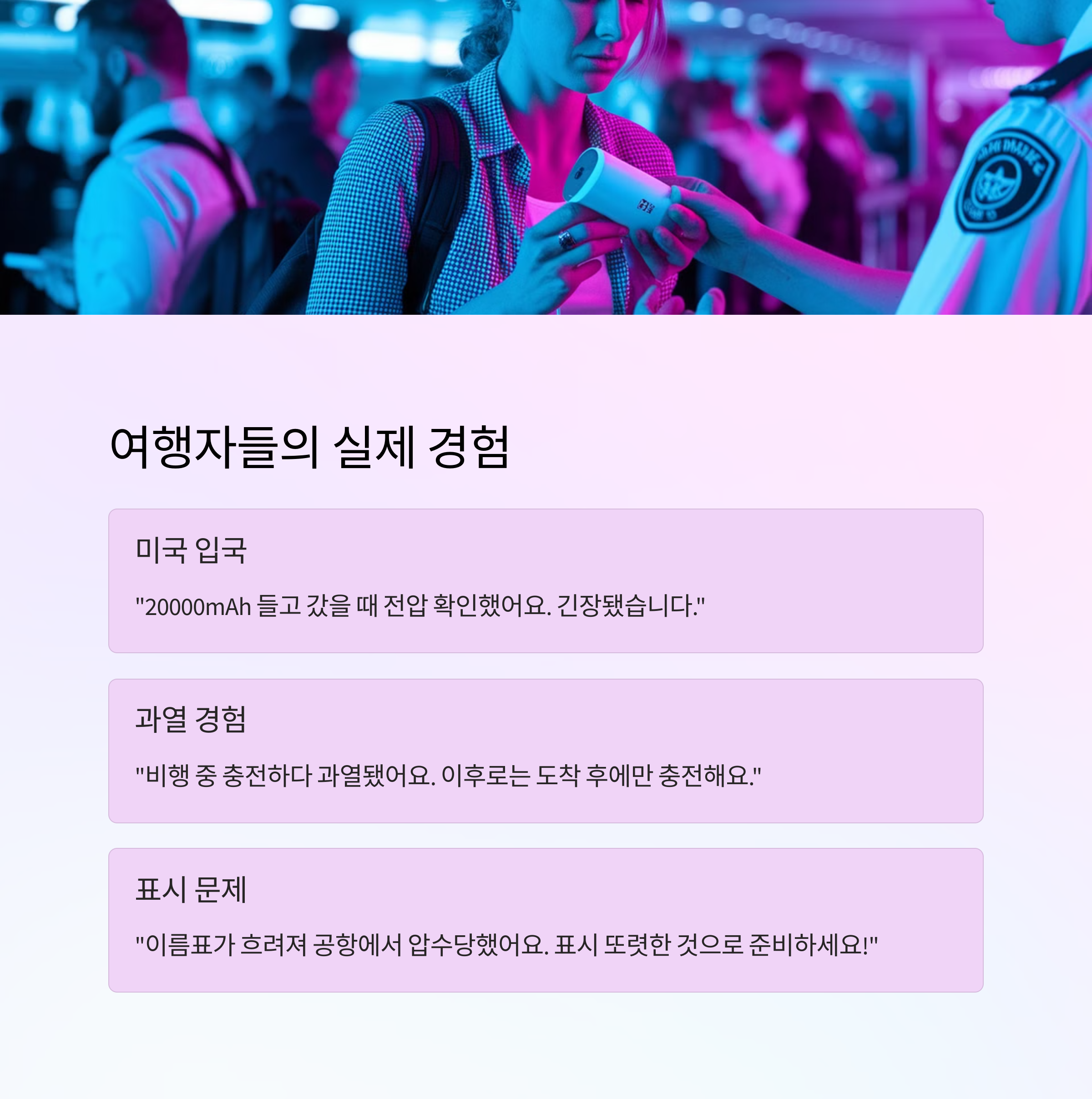 “샤O미 20000짜리 들고 갔다가 미국 입국 시 전압 확인하더라구요. 다행히 문제 없었지만 긴장했습니다.”