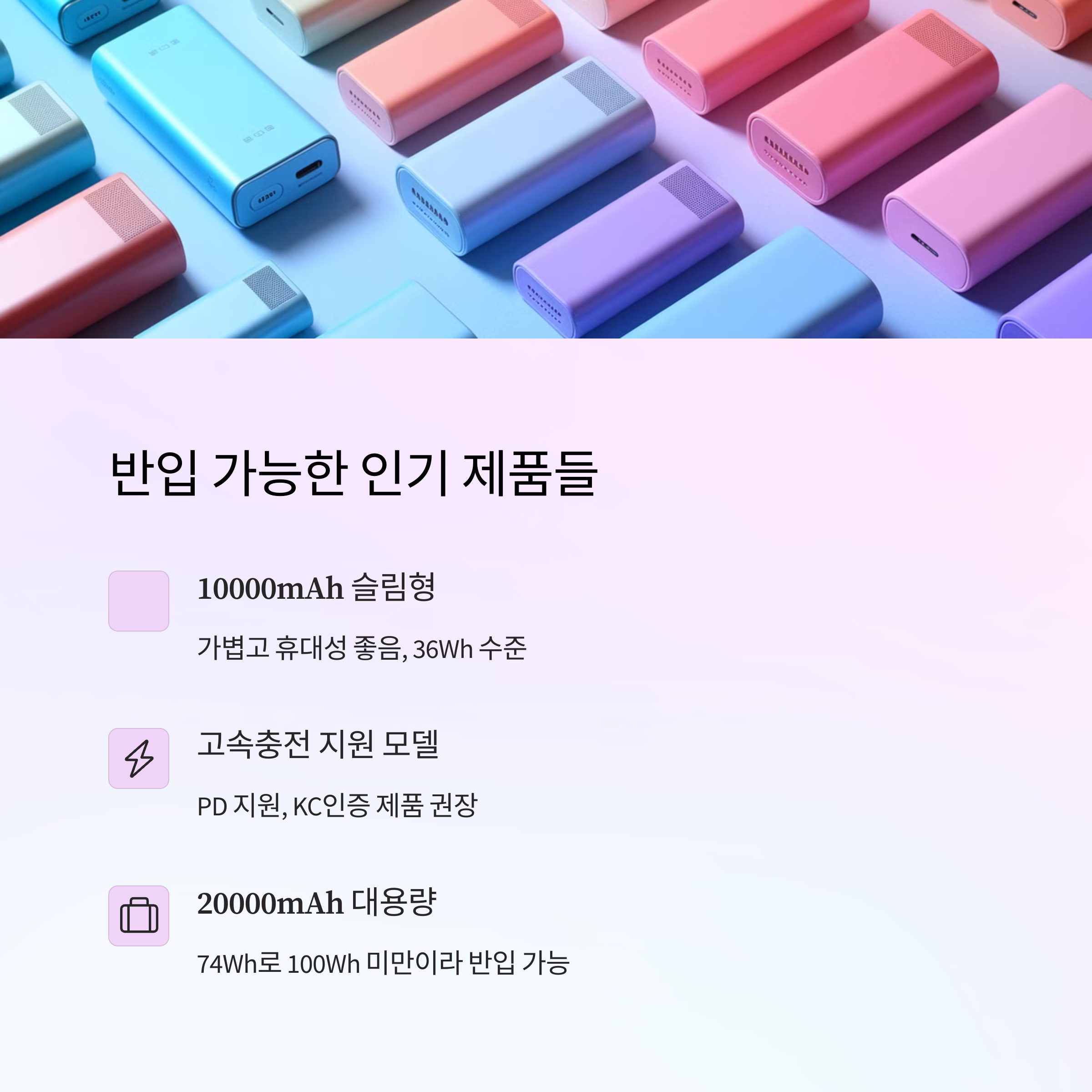 - 🔋 베O킨 20000mAh: 74Wh로 용량 크지만 100Wh 미만이라 허용