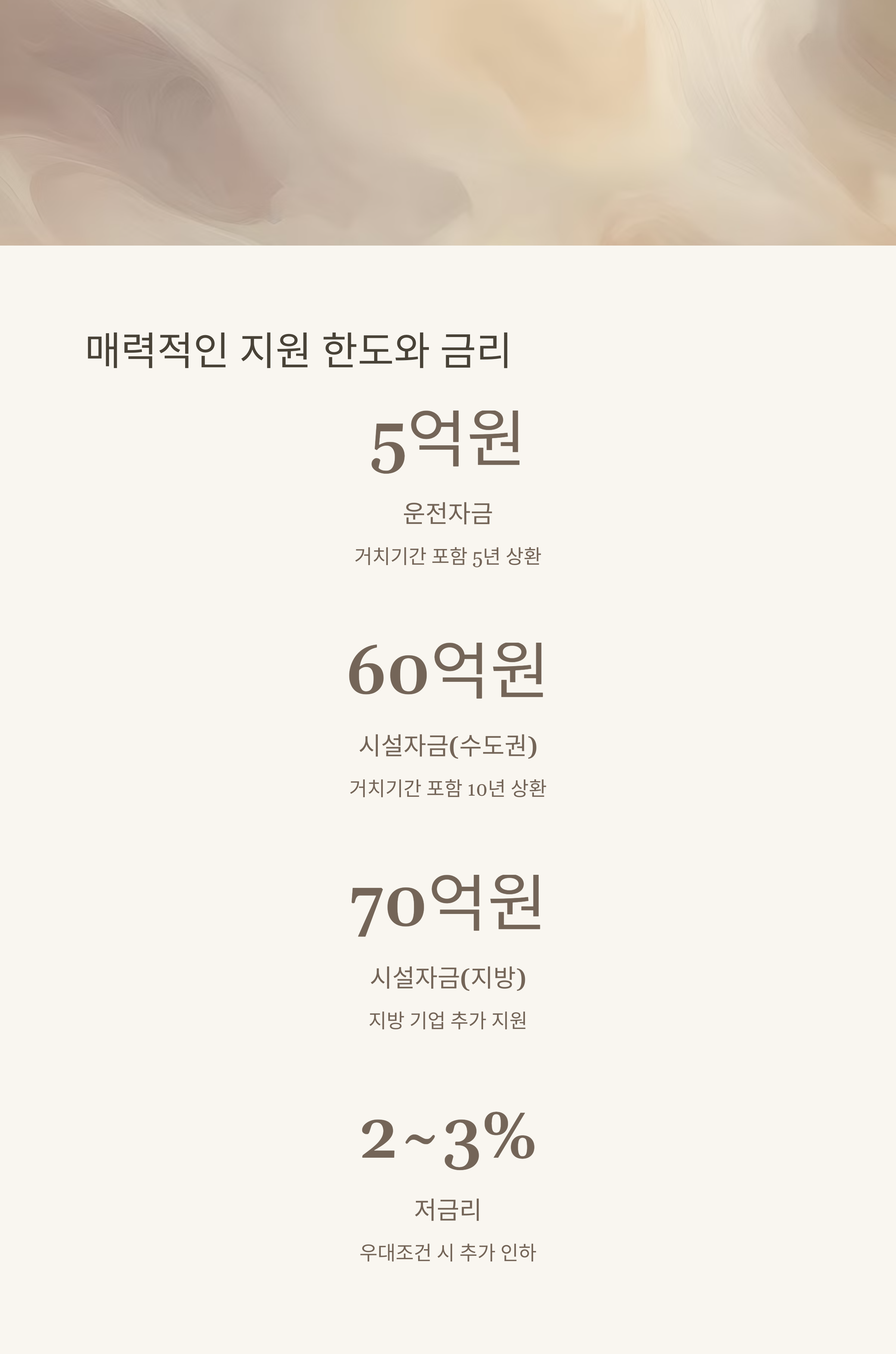 - 시설자금: 최대 60억 원 (거치기간 포함 10년 상환)