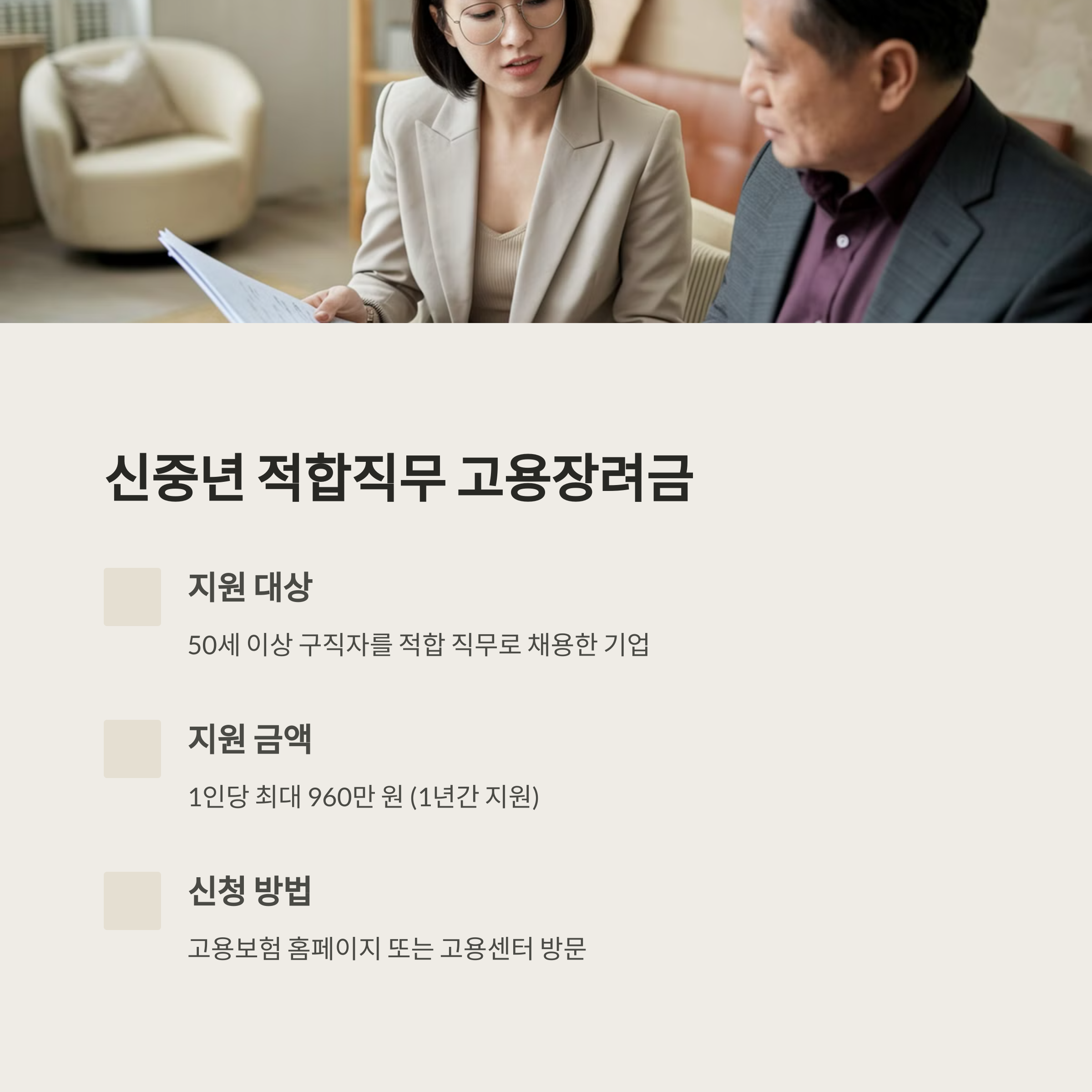 고령화 시대인 만큼, 중장년층의 경제활동 지속을 돕는 정책들이 점점 늘어나고 있어요. 저희 부모님도 최근 퇴직 후 이런 정책 덕분에 재취업에 성공했답니다. 🙌