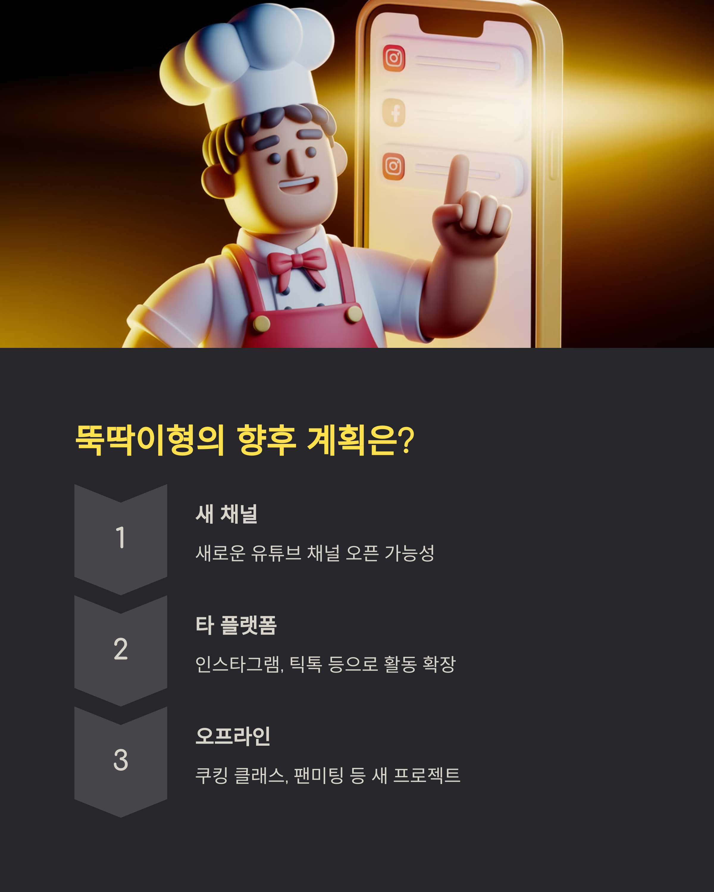 - 쿠킹 클래스, 오프라인 팬미팅 등 새로운 프로젝트