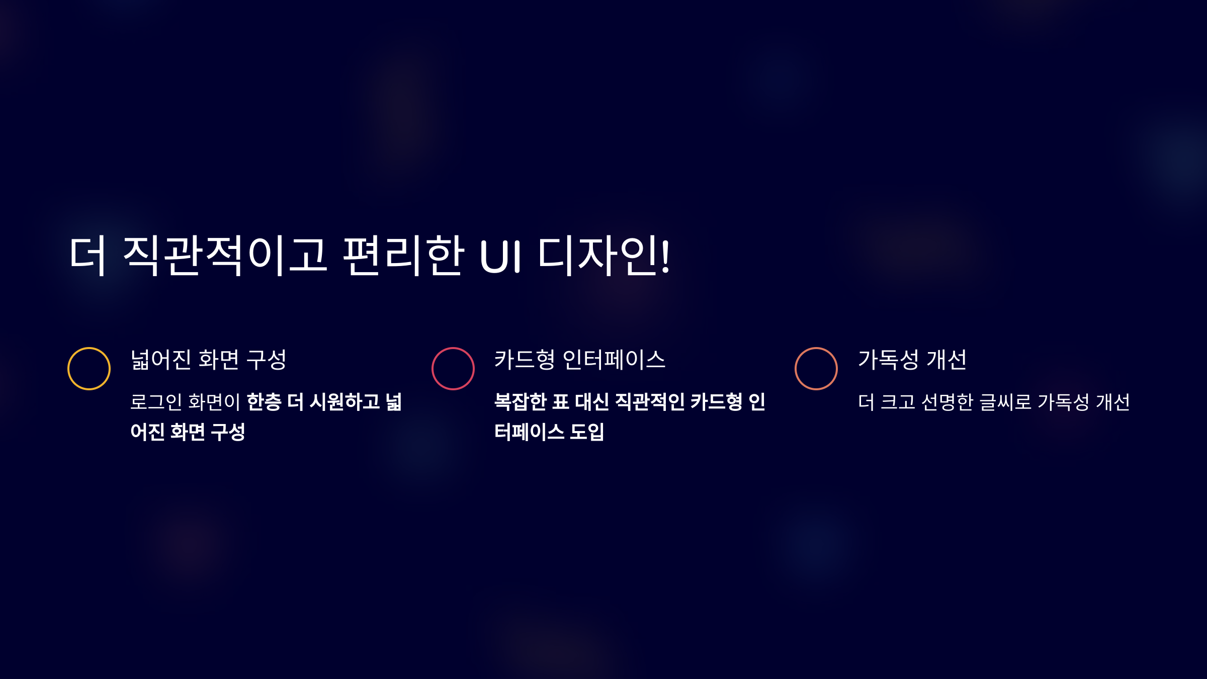 - 로그인 화면 한층 더 시원하고 넓어진 화면 구성