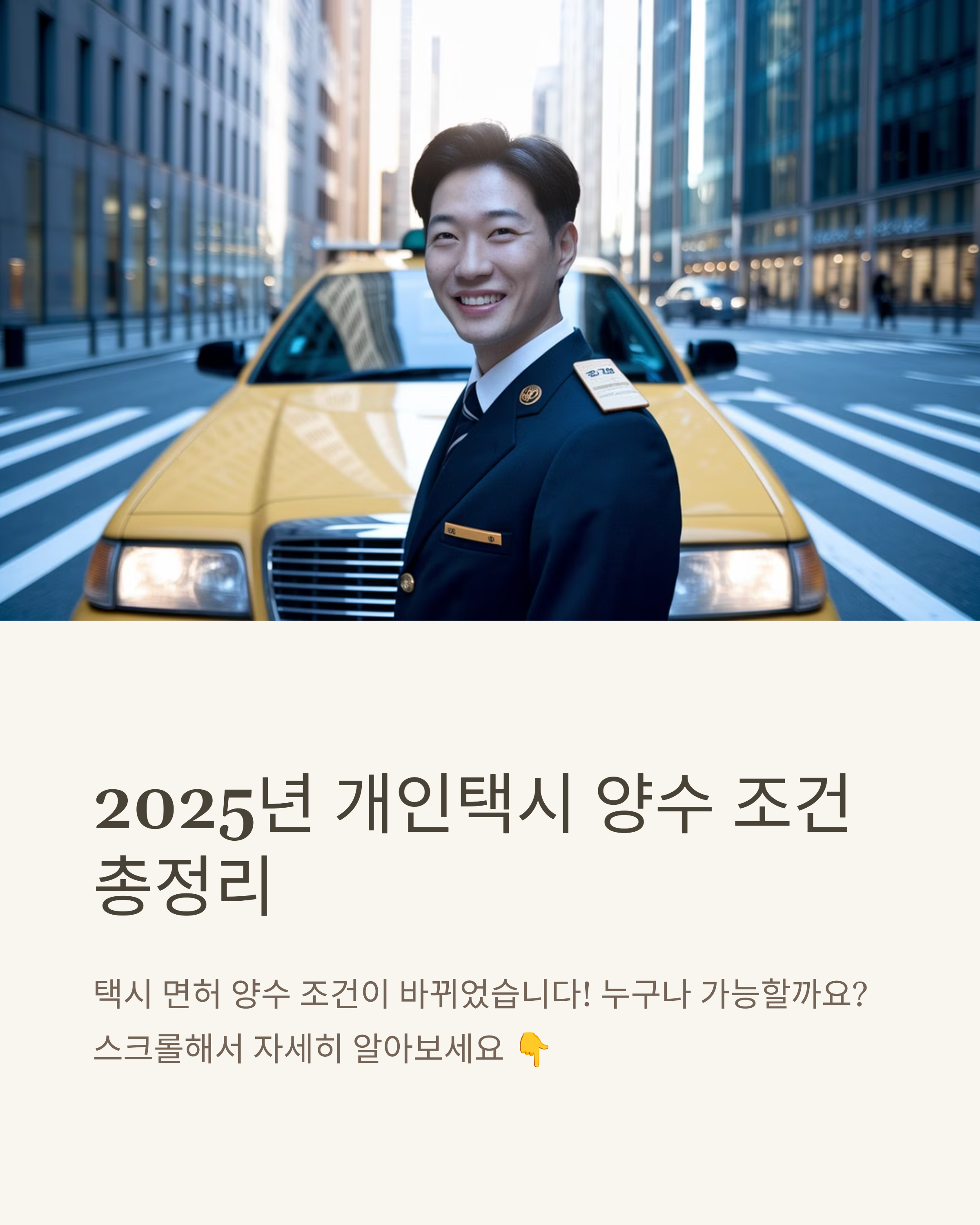 2025년부터 바뀐 개인택시 양수 조건 중 눈에 띄는 변화는 다음과 같습니다. 💡