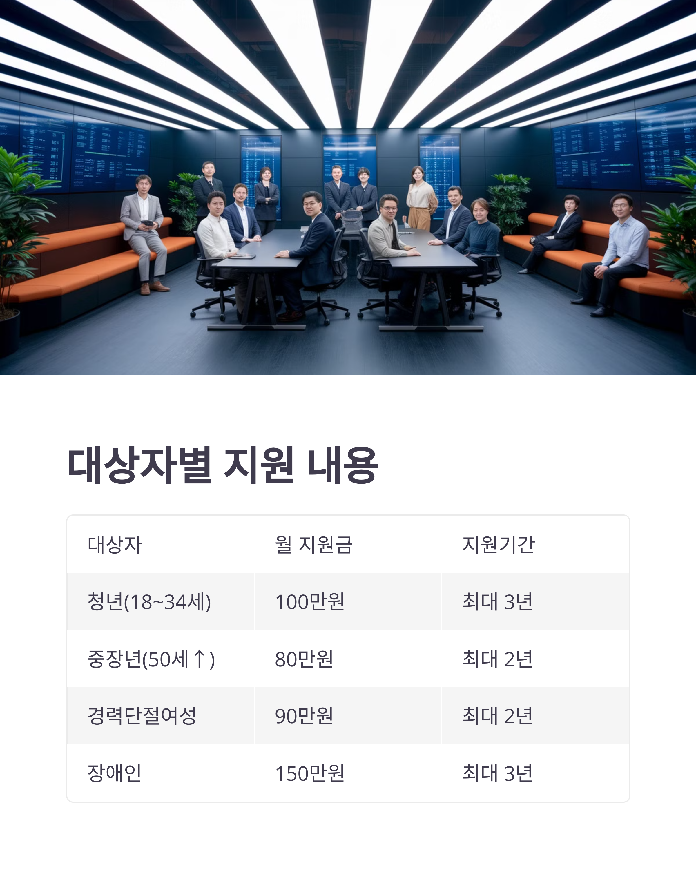 - 대상자별 세부 지원 기준 (청년, 중장년, 여성 등)