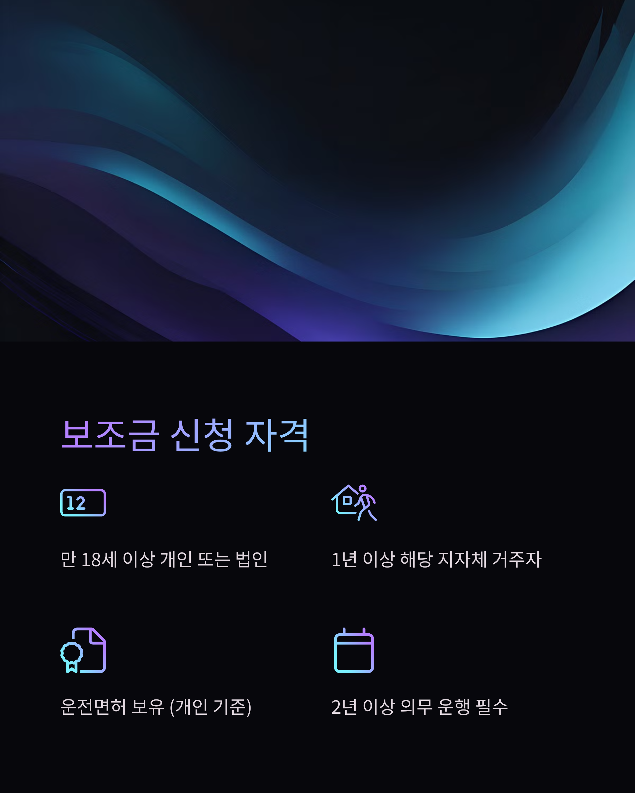 • 보조금 신청 이후 최소 2년간 차량 운행 의무