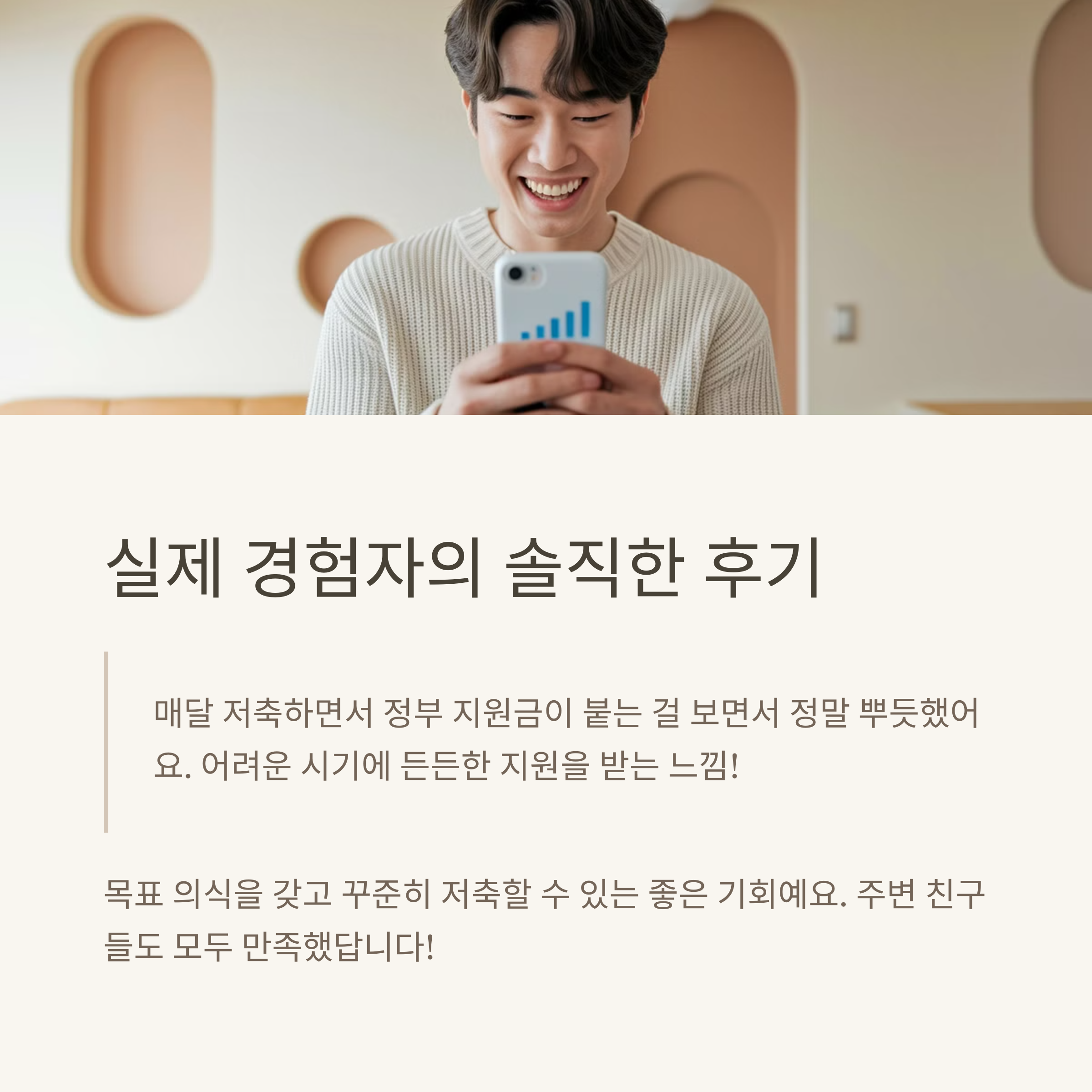 저는 매달 저축하면서 정부 지원금이 붙는 걸 보면서 정말 뿌듯했어요. 어려운 시기에 든든한 지원을 받는 느낌!
