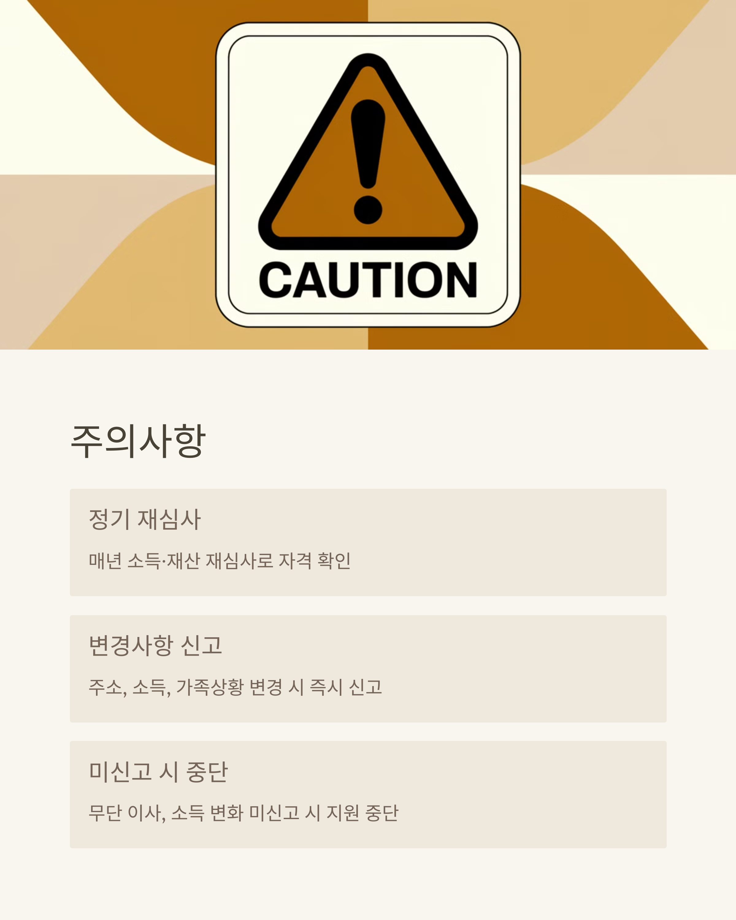 특히 무단 이사, 소득 변화 미신고 시 지원이 중단될 수 있으니 주의하세요! ⚠️